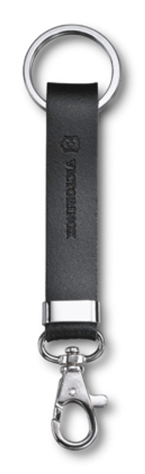Elegantní závěsku z černé kůže na opasek lze využít na pověšení kapesního nože nebo klíčů.