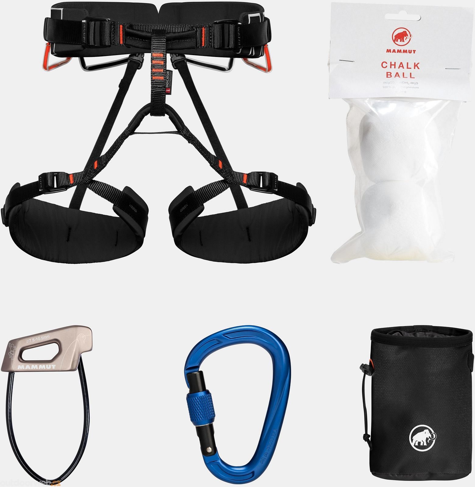 Set 4 Slide Climbing package obsahuje sedací úvazek, jistítko, karabinu a balení magnézia s pytlíkem. Set je univerzální a určený pro všechny lezecké aktivity, tj. na umělou stěnu, skály. Na rozdíl od běžných startovacích balíčků, obsahuje velmi pohodlný a komfortně řešený sedák s nastavitelnými nohavičkami.