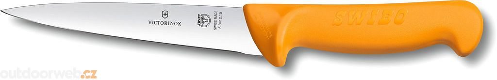 Nůž z kolekce Swibo od Victorinoxu s 15cm čepelí a žlutou polypropylénovou rukojetí.