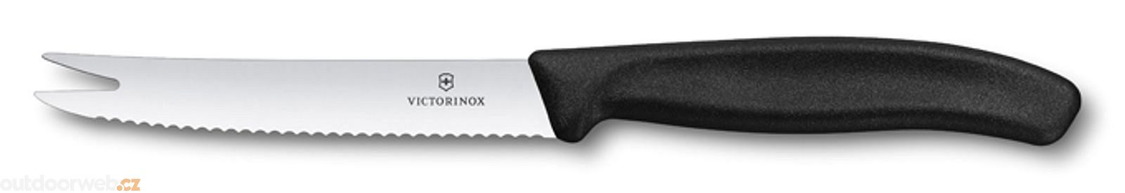 Nůž Swiss Classic se zvlněným ostřím a vidličkou na konci je ideálním nástrojem na porcování i servírování sýrů a uzenin. Ostrá čepel prořízne vše bez přilepení. A servírování pomocí vidličky na konci čepele je nejen elegantní, ale i velmi snadné.