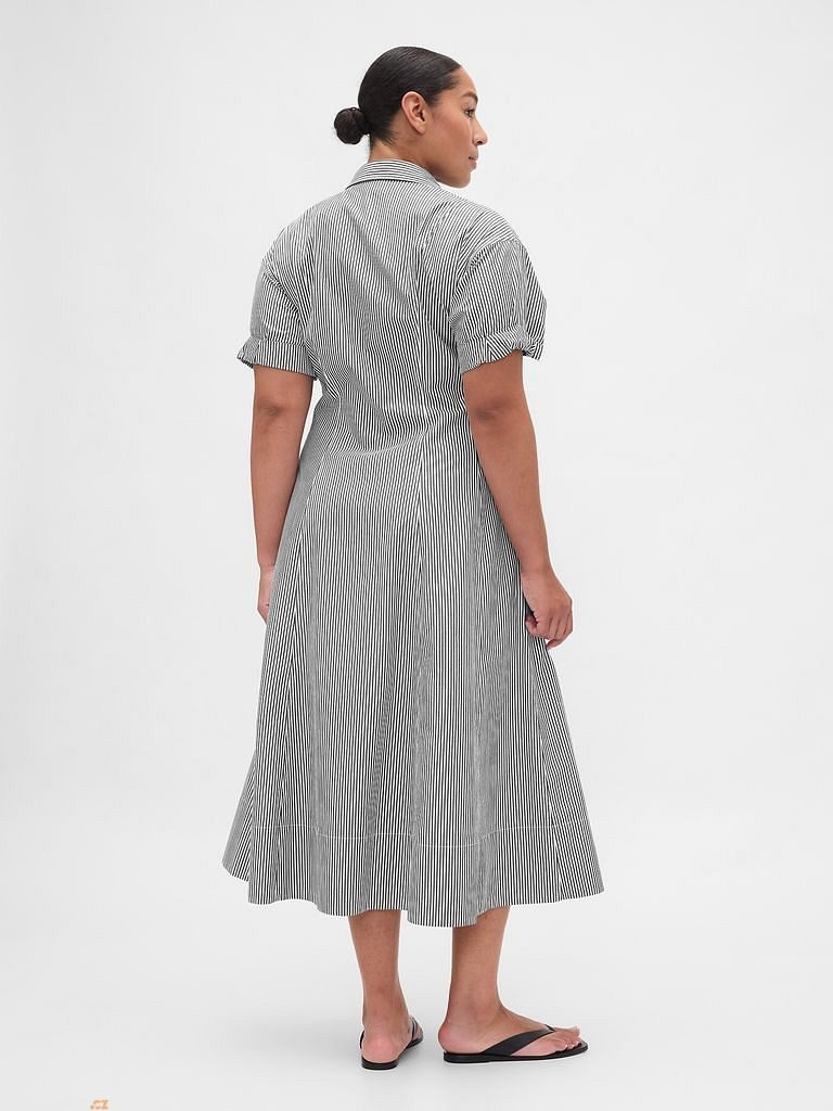 Dámské midi košilové šaty z bavlněného popelínu spojují klasický styl s lehkostí a pohodlím pro každodenní nošení.
