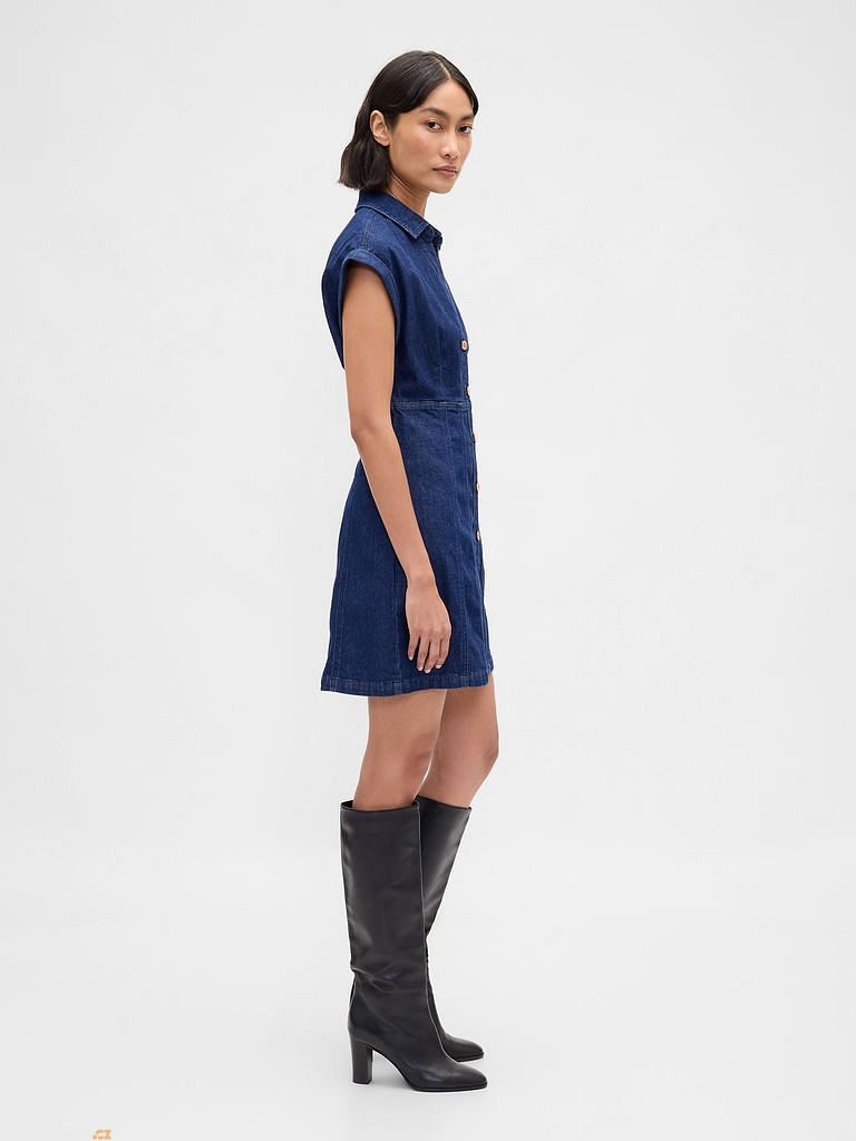 Dámské džínové mini šaty s nízkým podílem streče nabízejí klasický střih ve stylu fit & flare – zvýrazňují pas a volně se rozšiřují.