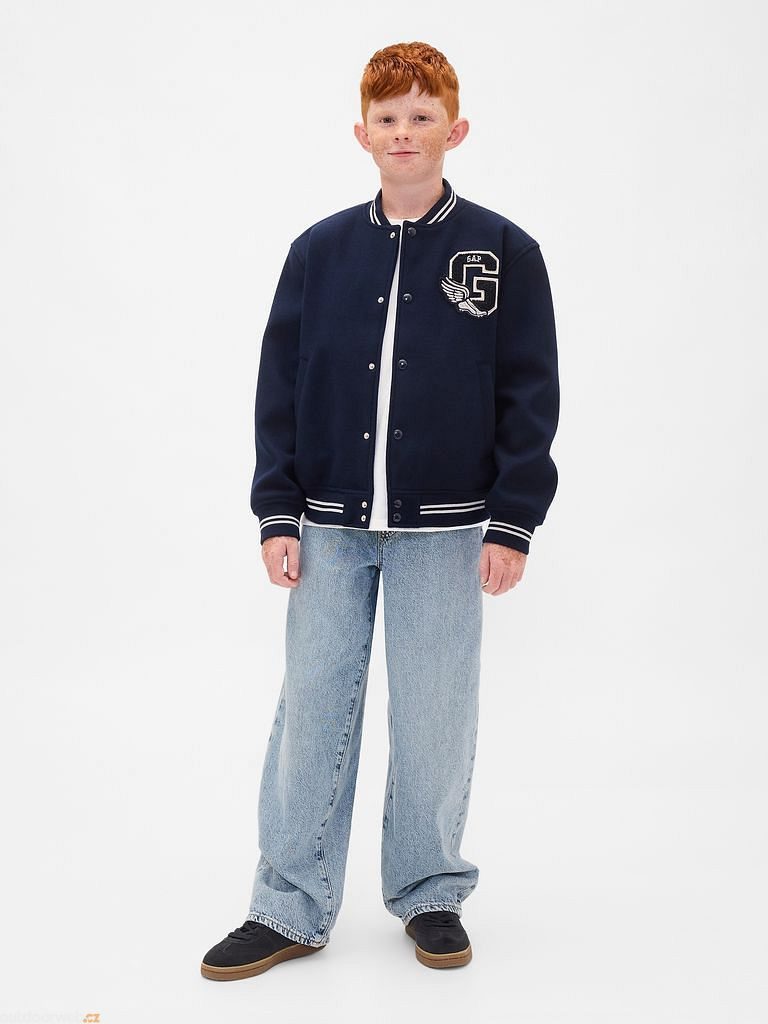- Kontrastní varsity „G“ logo Gap s grafikou na hrudi a dvojité sportovní pruhy na límci, manžetách i spodním lemu dodávají bundě univerzitní styl