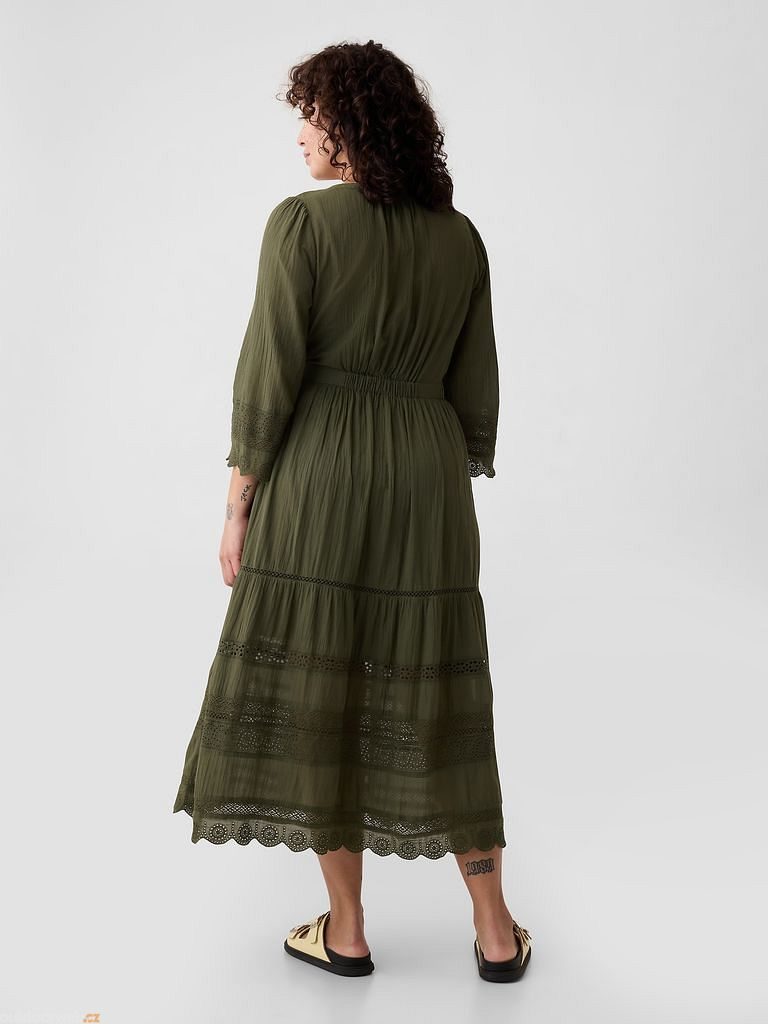 GAP 880359-00 Krajkové midi šaty Zelená
