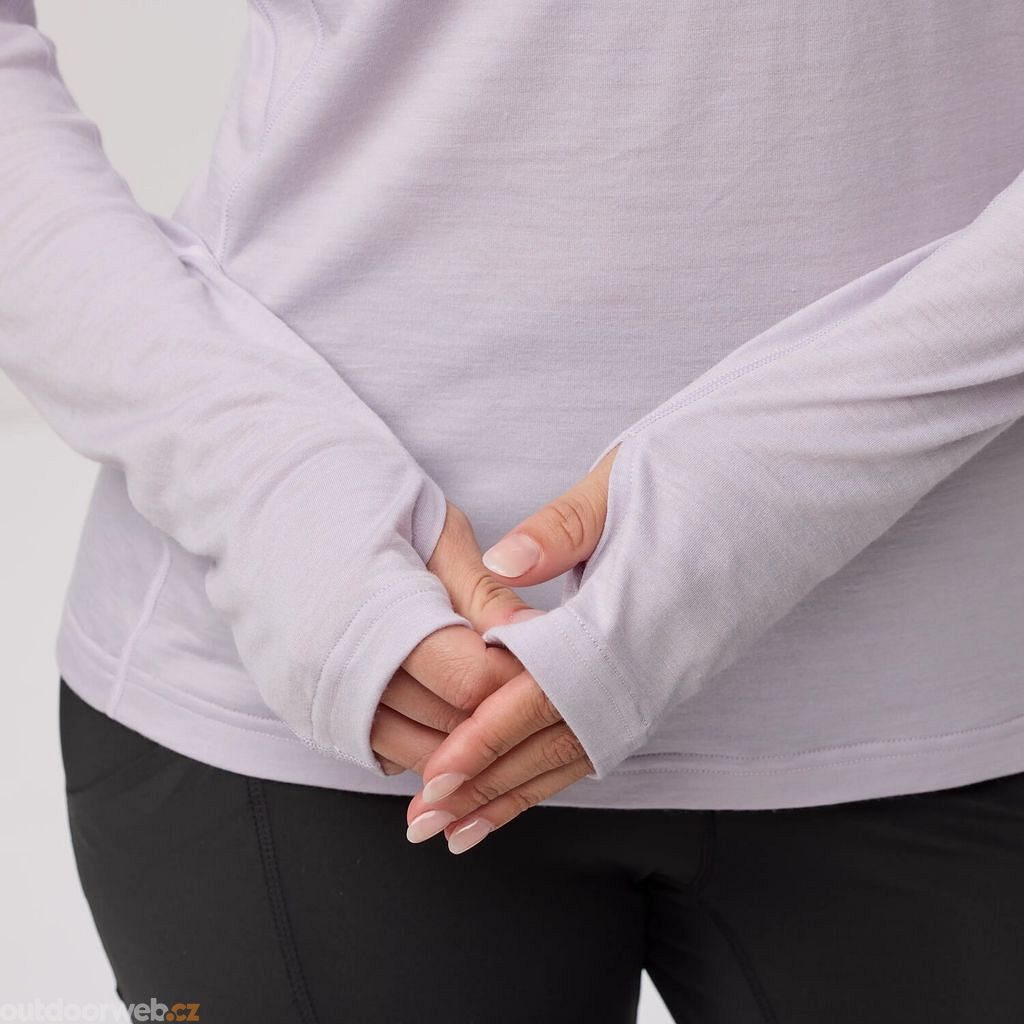 Dlouhé rukávy s otvory na palce a pevná kapuce vám poskytují flexibilní ochranu před sluncem a chladem. Díky přírodní odolnosti vlny proti nepříjemným pachům je tato lehká vrstva perfektní volbou pro vícedenní výlety i běžné nošení.