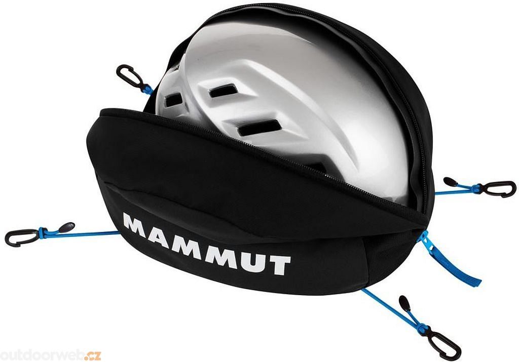 Držák na helmu Holder Pro značky Mammut může být zcela uzavřen, což chrání a ukládá helmy různých velikostí pro alpské lezení nebo horolezectví.