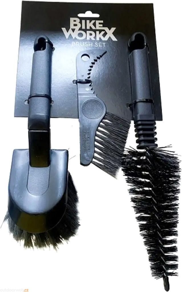 Profesionální sada tří specializovaných kartáčů pro kompletní péči o kolo. Každý kartáč je navržen pro specifické části bicyklu.