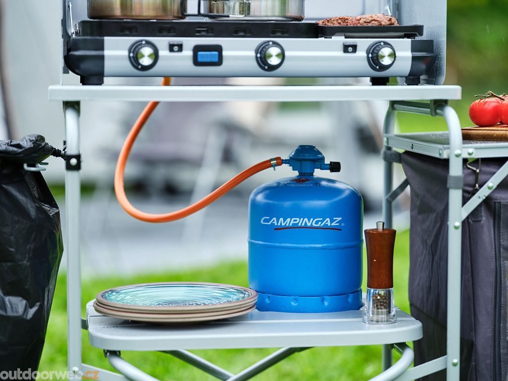 - Multifunkčnost a přizpůsobivost: Kuchyňská sestava Camp Cuisine je navržena s důrazem na potřeby moderního táborníka, nabízí místo pro vařiče a grily a je vybavena množstvím přídavných prvků pro snadnou manipulaci s plynovými kartušemi a lahve.