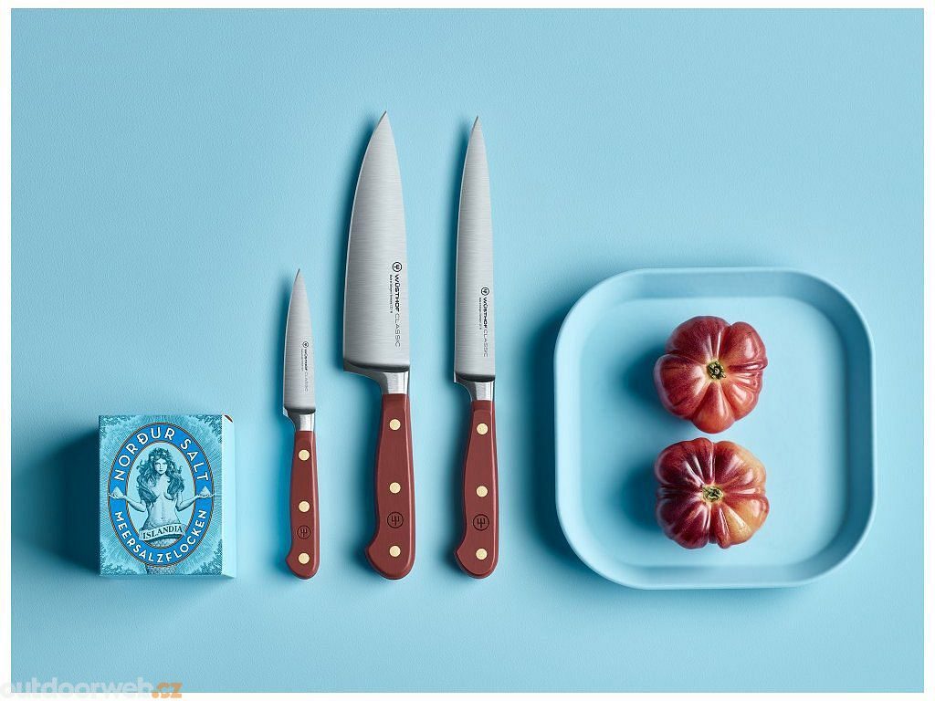 Univerzální nůž s barevnou čepelí z kolekce Classic. Malý, všestranný nůž s tenkou čepelí a ostrou špičkou, ideální na krájení cibule, bylinek, ovoce, zeleniny a špikování masa.
