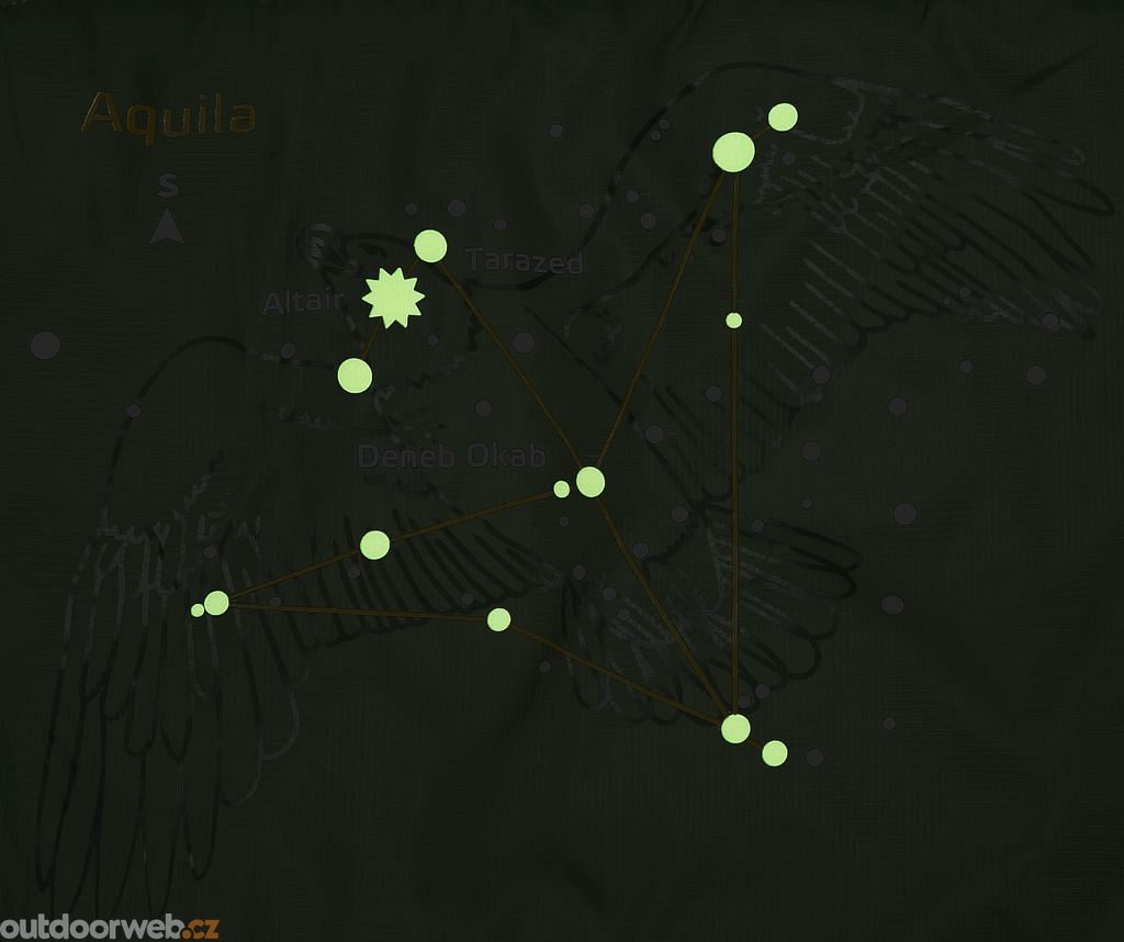 - Obrazce souhvězdí na svrchní části spacáku za tmy fosforeskují