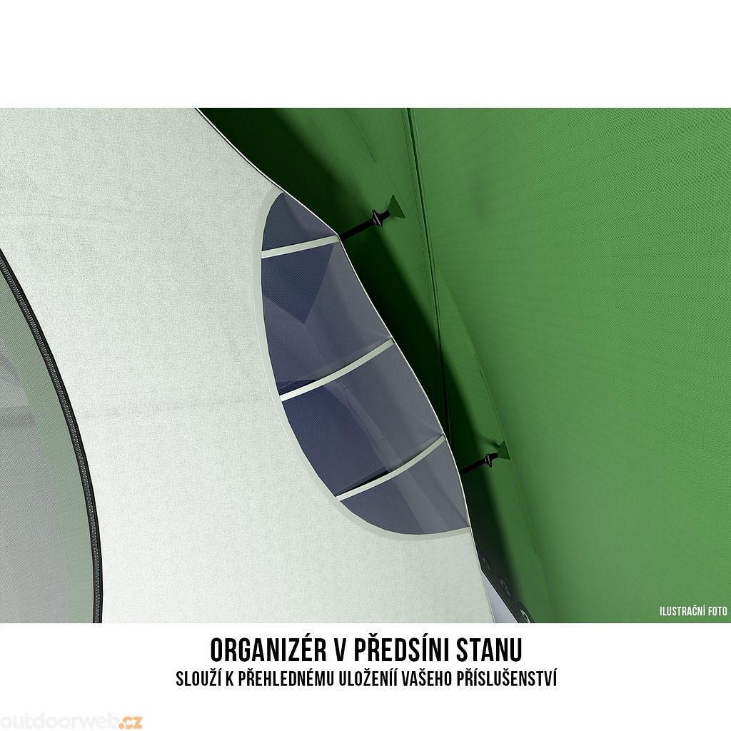 Předsíň, kterou lze využít i jako společenskou místnost, disponuje dvěma vchody. Z jejich dveří si v horkém létě můžete vytvořit příjemně stínící markýzu. Oba pláště stanu a podlážka jsou pak vyrobeny z kvalitních materiálů, které zaručují odolnost proti vnějším vlivům, dobrou prodyšnost a dostatečný komfort.