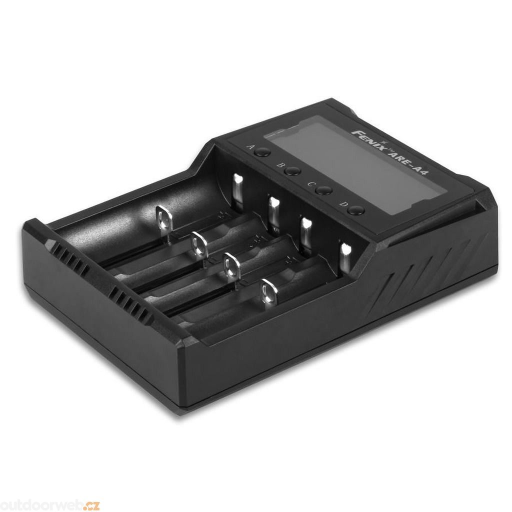 Univerzální čtyřkanálová nabíječka Fenix ARE-A4 je určena pro 3,7V/3,6V Li-ion i NiMH/NiCd akumulátory. Každý nabíjecí slot je monitorován nezávisle, takže lze najednou nabíjet baterie různých velikostí, kapacit a dokonce i různých chemií (Li-ion i NiMH/NiCd je možné nabíjet najednou). Automaticky rozpozná vložený typ akumulátoru a zvolí optimální nabíjecí algoritmus.