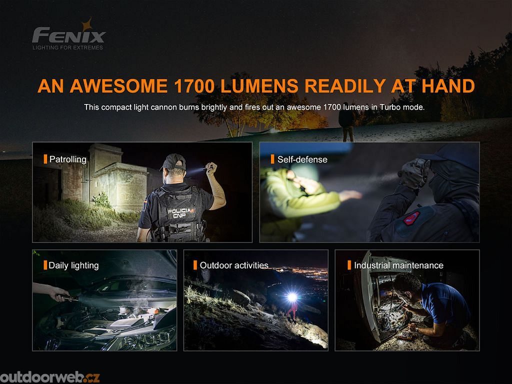 Fenix je high-tech přední značka pro outdorové sportovní osvětlení včetně špičkových svítilen, světlometů, světel pro jízdní kola, campingových luceren, čelovek, nabíjecích baterek a příslušenství