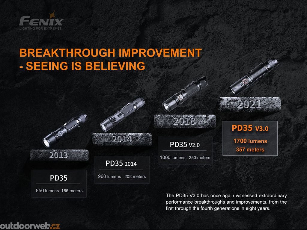 PD35 V3.0 zaujme nejen malou velikostí a vysokým výkonem, ale i taktickým spínačem a možností připevnění kabelového spínače Fenix AER-02. Můžeme ji proto doporučit nejen pro všechny outdoorové nadšence, ale najde jistě využití i v bezpečnostních složkách a pro myslivost.
