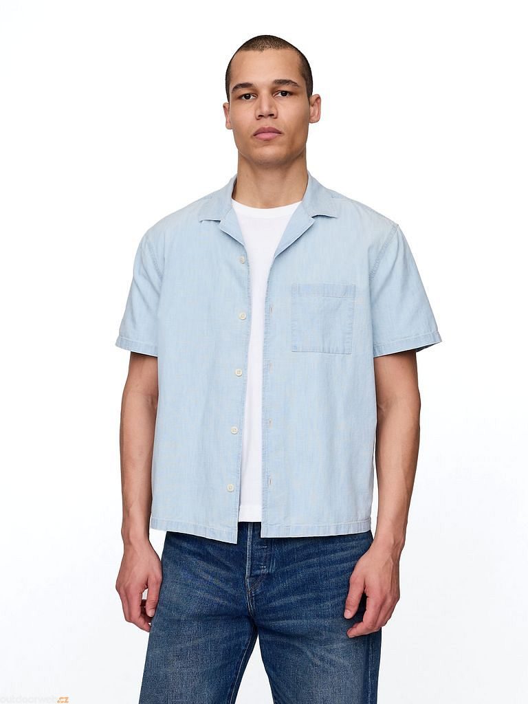 Pánská chambray košile s krátkým rukávem je ideální volbou pro letní dny i uvolněný městský styl.