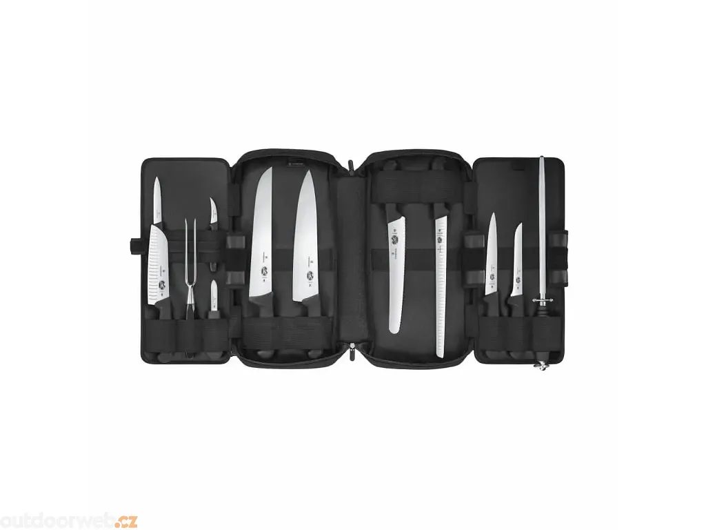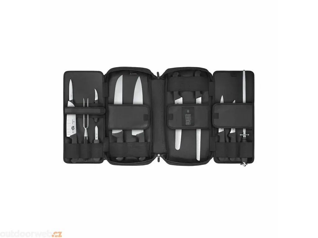 Pořadač na nože je dostatečně pevný, aby odolal ostřím a hranám nožů, zatímco silná elastická poutka a popruhy na suchý zip udržují vše bezpečně zajištěné na svém místě, i když jste právě na cestách. Pořadač je dodáván s 12 kuchařskými noži a nástroji.