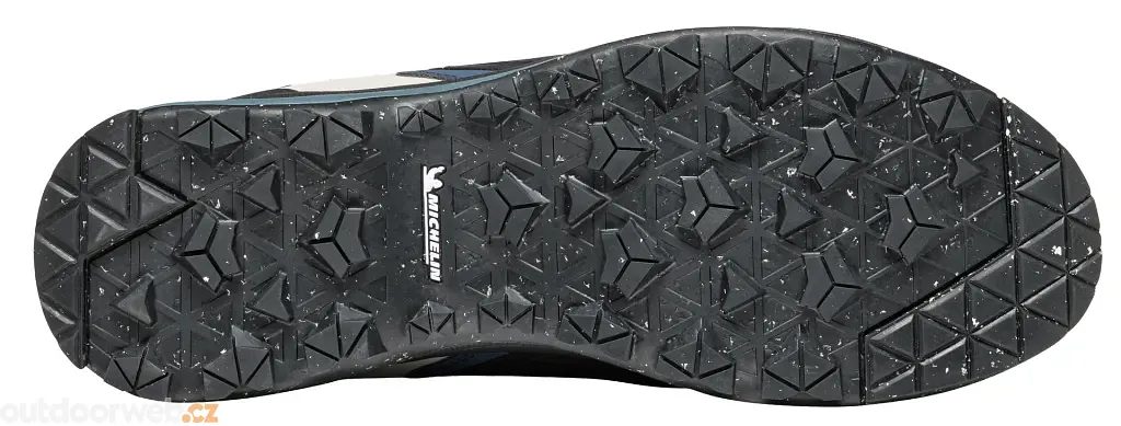 - Hybridní podešev Michelin® (37,5% recyklovaná pryž) pro lepší trakci, ostrý dezén usnadní pohyb v měkkém terénu, pro stoupání ve skalnatém terénu má uzpůsobenou lezeckou zónu pod špičkou