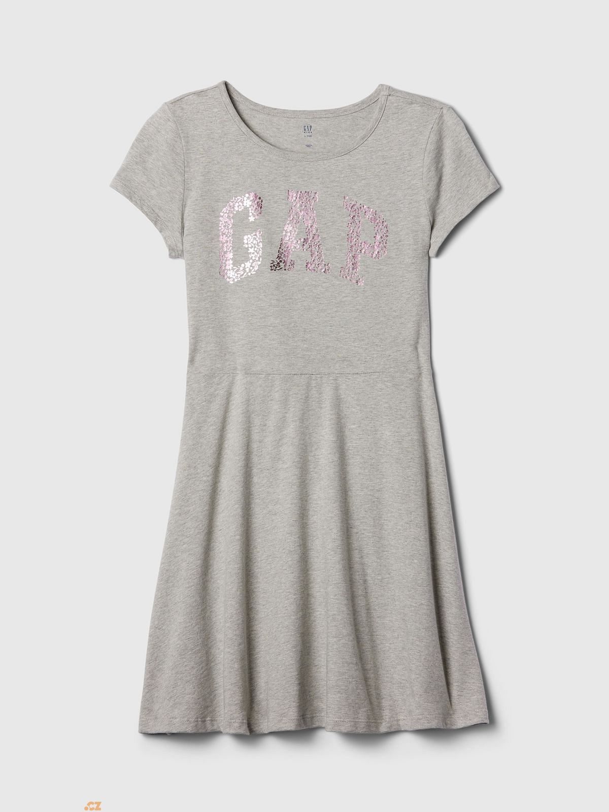 - Metalické logo Gap.