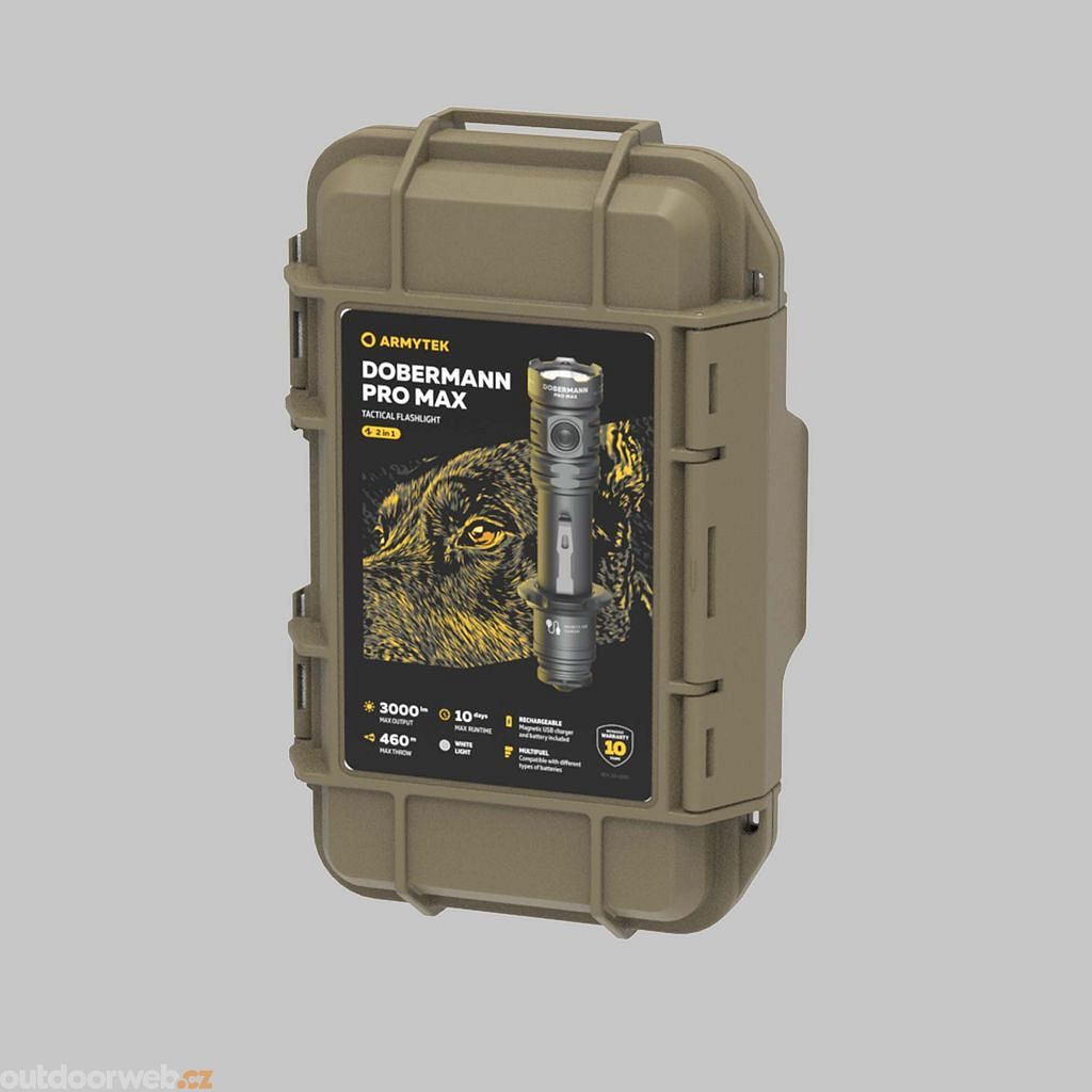 Armytek Dobermann Pro Max je extrémně výkonná taktická svítilna s dlouhým dosvitem a maximální odolností. Ideální volba pro profesionální použití, lov i náročný outdoor.