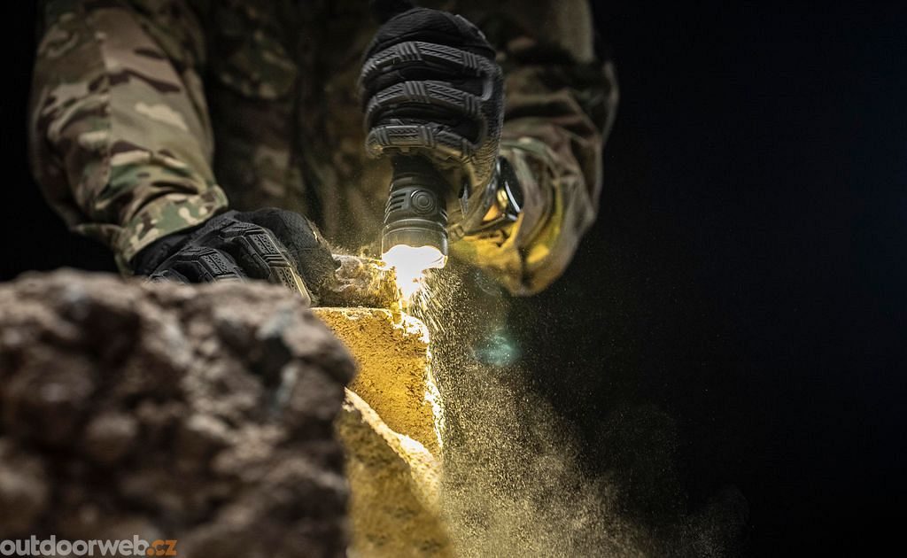 Vysoce intenzivní LED a speciální reflektor vytváří silný světelný kužel s výrazným hotspotem pro osvětlení vzdálených objektů. - Taktická odolnost a univerzální použití