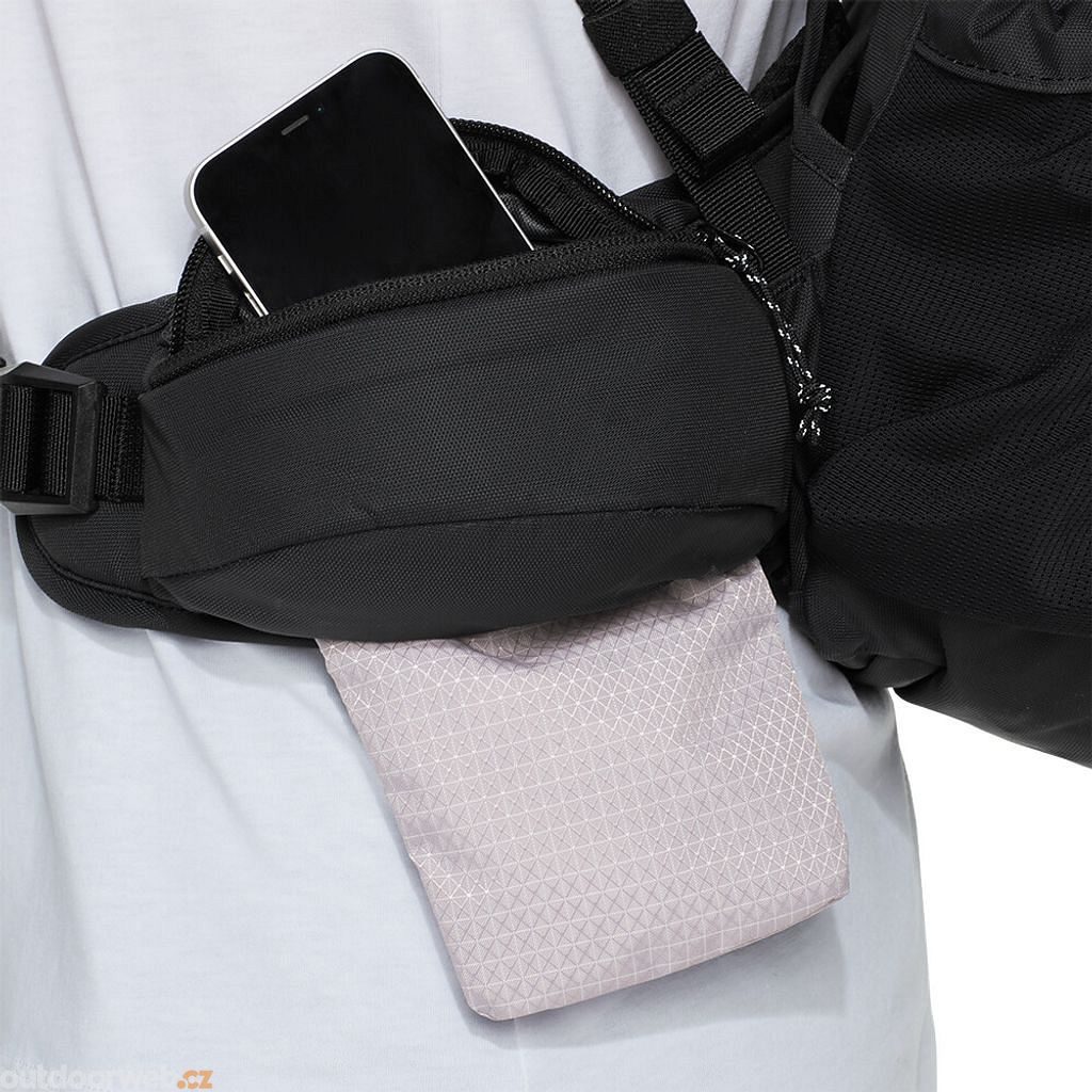 Kapsy: 2 boční síťované, Na bederním pásu se zipem, Vnitřní a vnější v klopě