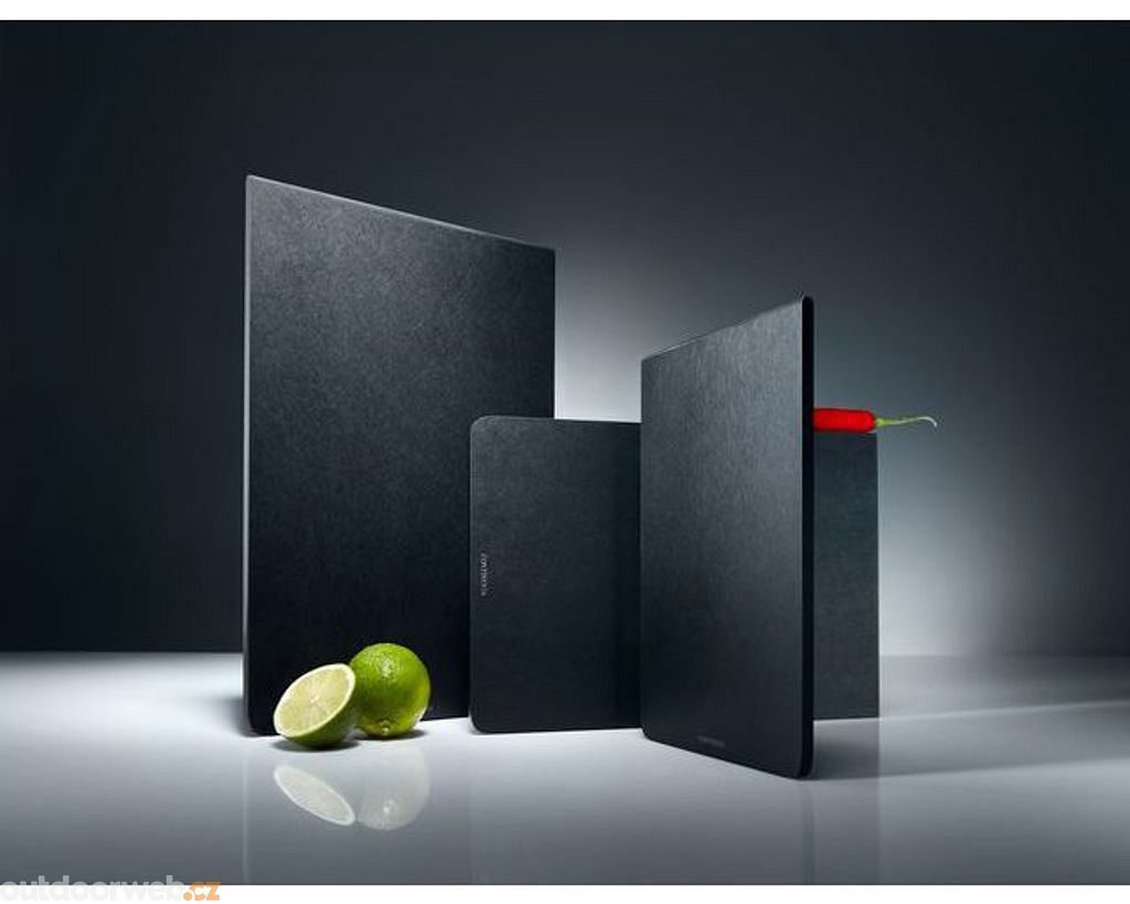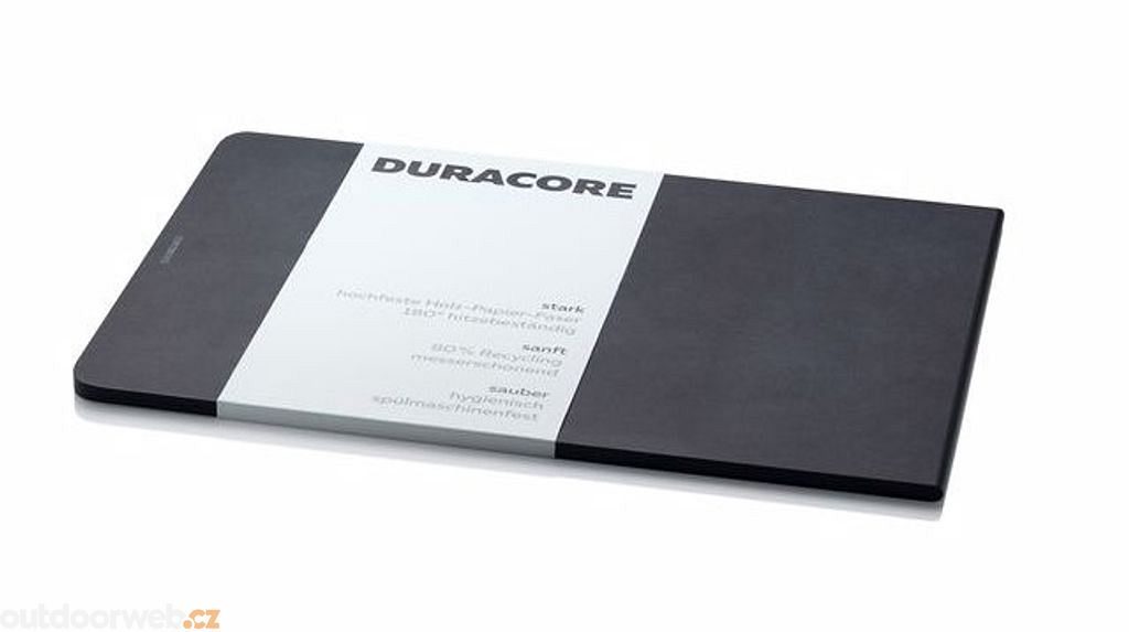 Prostorné krájecí prkénko z inovativního materiálu Duracore nabízí velkorysou pracovní plochu pro přípravu pokrmů. Lisovaná dřevopapírová vlákna zajišťují vysokou odolnost a šetrnost k ostří nožů.
