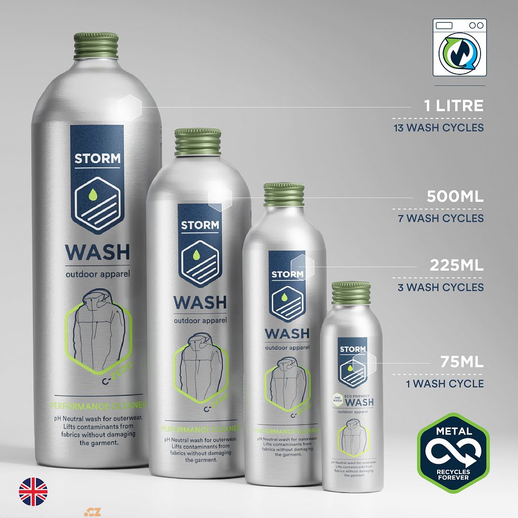 Speciální čisticí prostředek Storm Apparel Wash je revolučním řešením pro péči o vaše technické oblečení. Jeho jedinečná technologie „vše v jednom" vám umožní vyčistit a znovu impregnovat oblečení v rámci jediného pracího cyklu přímo doma.