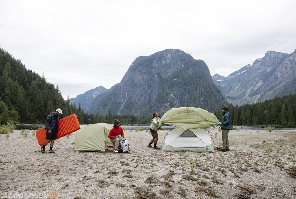 Hliníkové pruty řady 7000, podlepené vodotěsné švy a nátěr bez toxických PFAS drží stan vztaženého i když se počasí změní ze zlého na ještě horší.