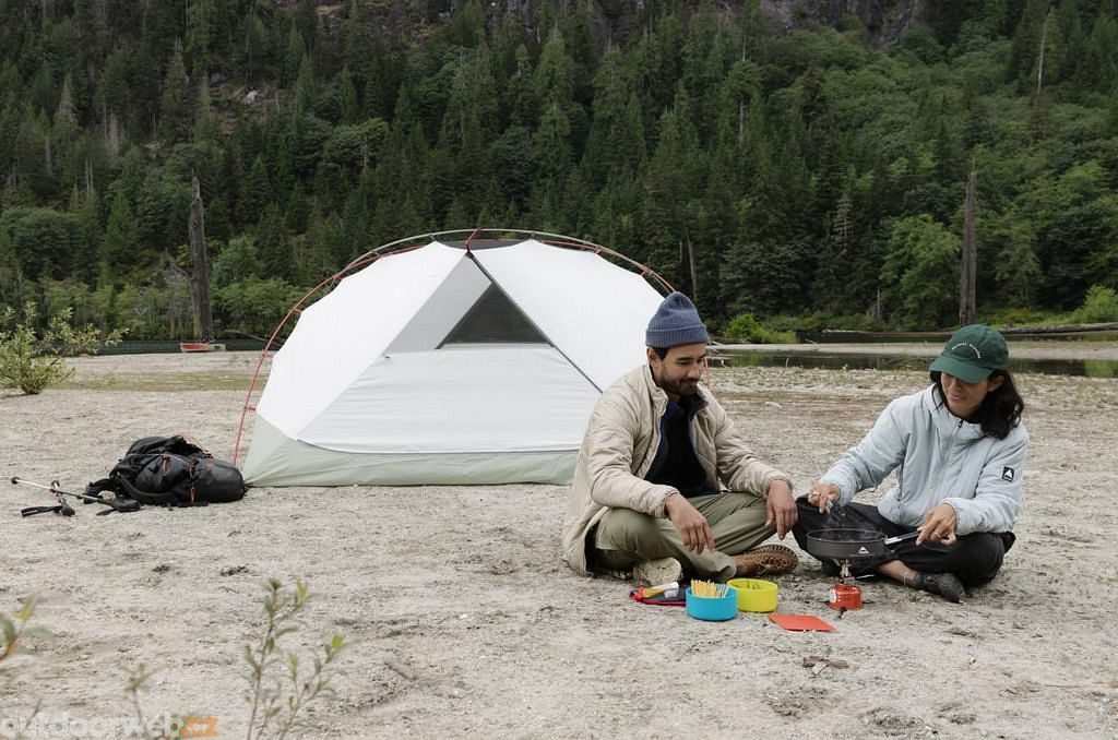 Dvojmístný stan, který neslibuje nic víc, než co skutečně dodá. Prostorný, větrný a neprůstřelný proti klimatu. Stavba na pět minut, jízda na týdny.