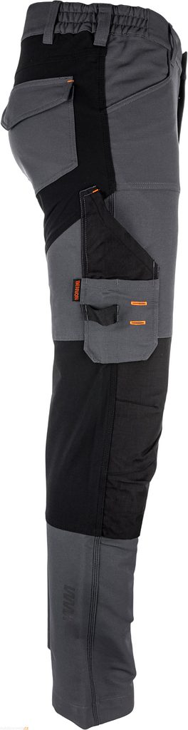 Zesílená kolena s možností vložení výztuh, vodoodpudivá úprava a reflexní prvky zajišťují vaši bezpečnost během celého pracovního dne.