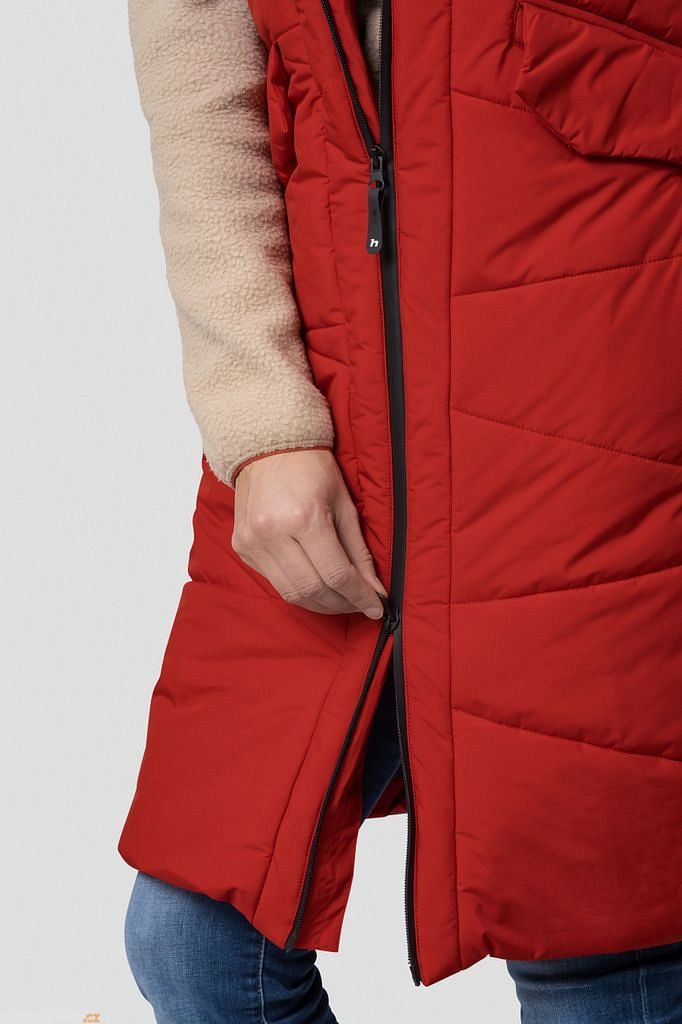 Dámská prošívaná vesta Hannah Ela v moderním prodlouženém střihu je lehká a příjemná na tělo a skvěle vás zahřeje během procházek po městě. U vesty je použit membránový materiál Resstex s vodním sloupcem 5 000 mm s DWR úpravou, který je doplněn o měkkou izolační výplň Duratherm High Loft.