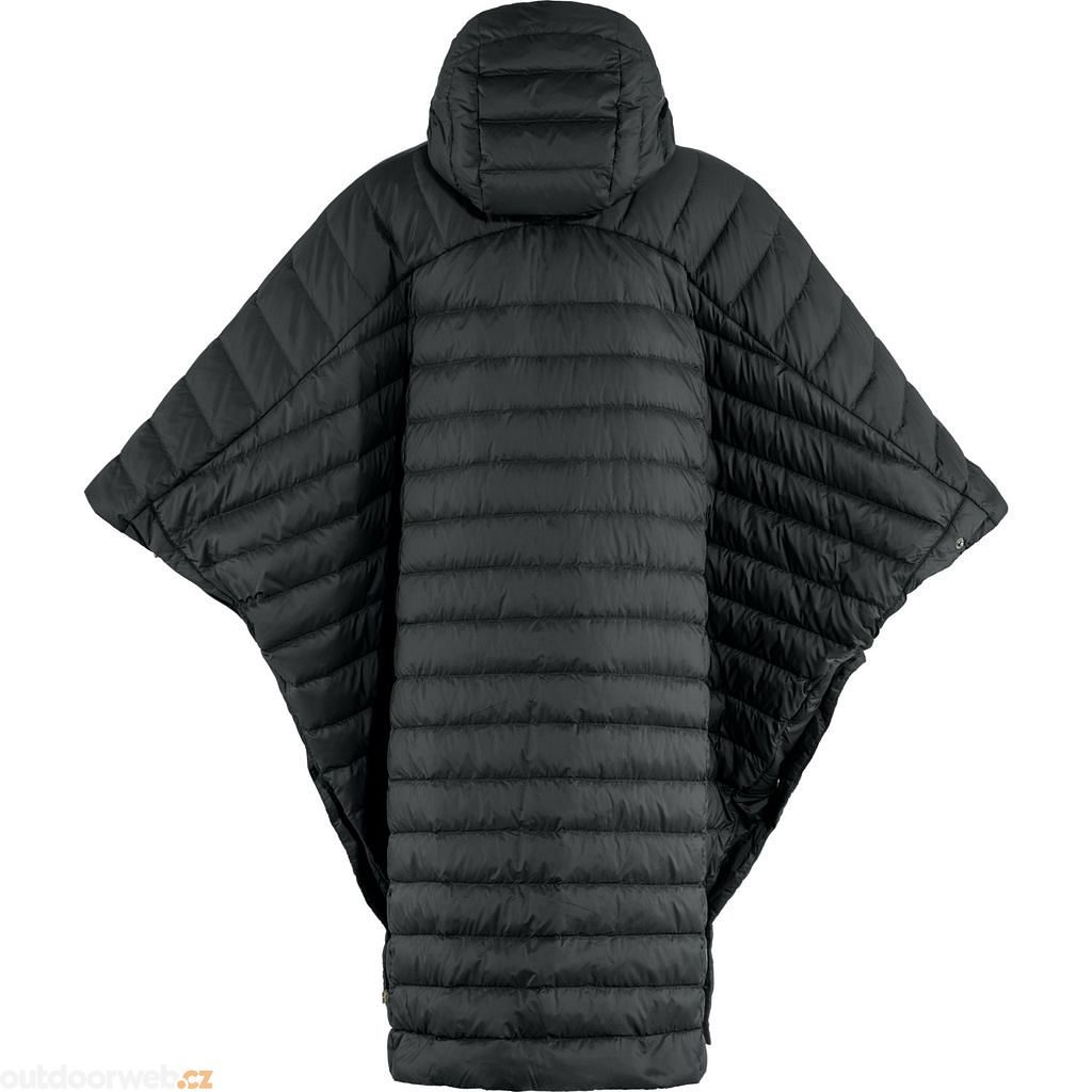 Lehké, sbalitelné péřové pončo pro pobyt v přírodě při nízkých zimních teplotách. Snadno se obléká na svrchní část skořepinové bundy při pauze na svačinu během túry na lyžích nebo bruslích. Pas lze nastavit pomocí popruhového pásku; pásek připevníte kolem pasu provlečením výstupků v přední kapse a vnitřního kanálu na zadní straně (pásek je součástí balení).