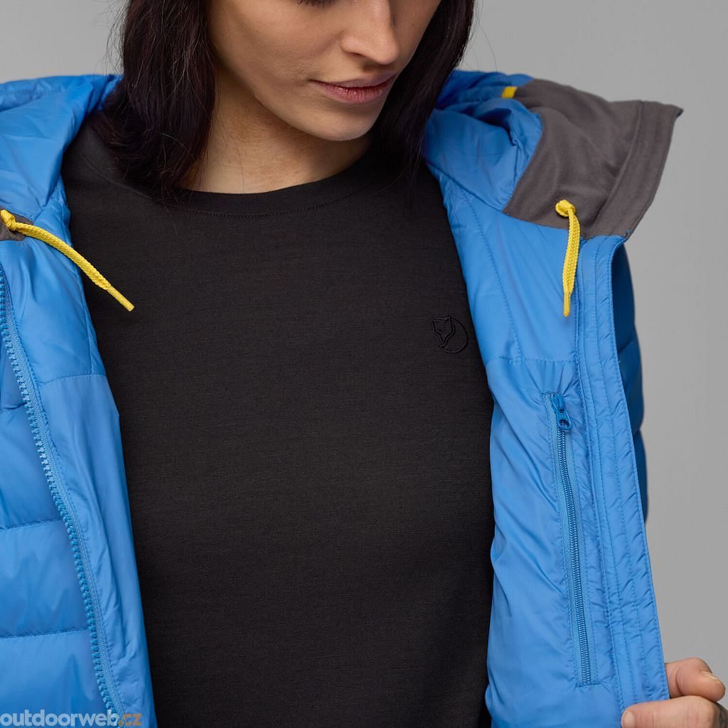 Zateplená jednou vrstvou eticky vyrobeného prachového peří v prošívaných kanálech, se syntetickou izolací přes ramena pro větší odolnost proti tlaku a vlhkosti. Je součástí řady Expedition Series společnosti Fjällräven s ikonickým designem, udržitelně vyráběnými materiály a vysokou spolehlivostí v chladných podmínkách.
