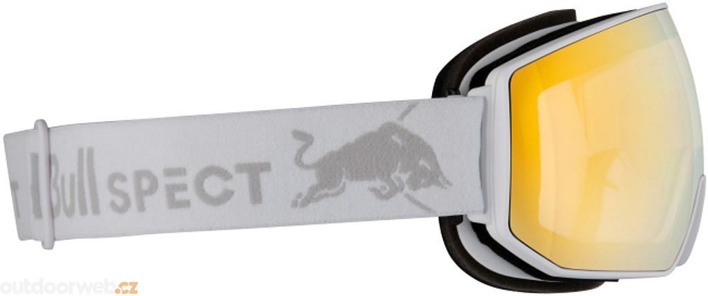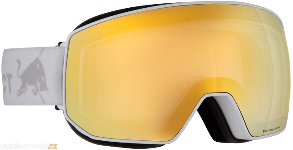 Objevte revoluční lyžařské brýle Red Bull Spect Fink s fotochromatickou technologií! Tento exkluzivní model v elegantní kombinaci bílé a hnědé se zlatým zrcadlovým efektem představuje vrchol adaptivní optiky.