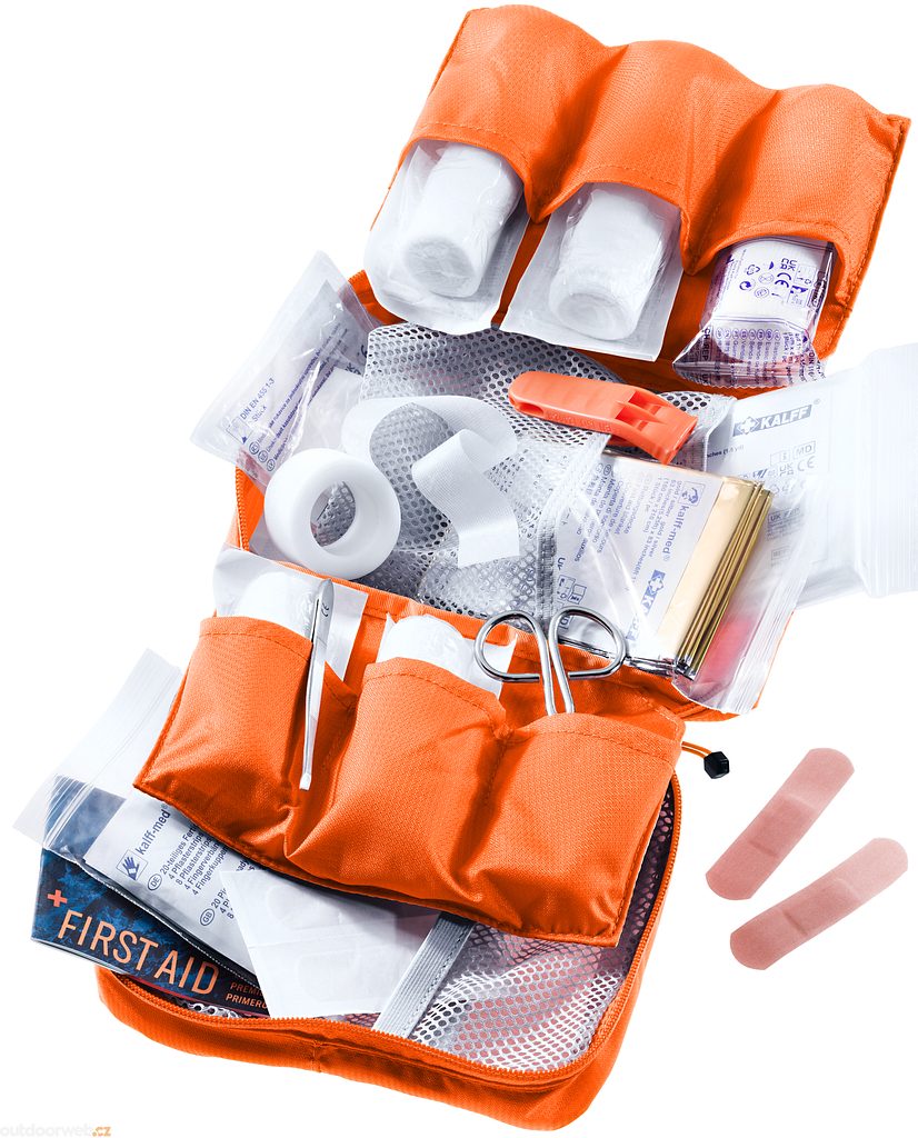 Naše velmi dobře vybavená lékárnička obsahuje rozsáhlý materiál pro první pomoc, jako jsou nůžky na obvazy, spousta obvazů – a navíc volný prostor pro osobní léky nebo jiné doplňky. Vysoce kvalitní lékárnička je proto tím pravým vybavením pro velkou rodinnou nebo skupinovou túru. Základní vybavení bylo vybráno podle lékařských doporučení.