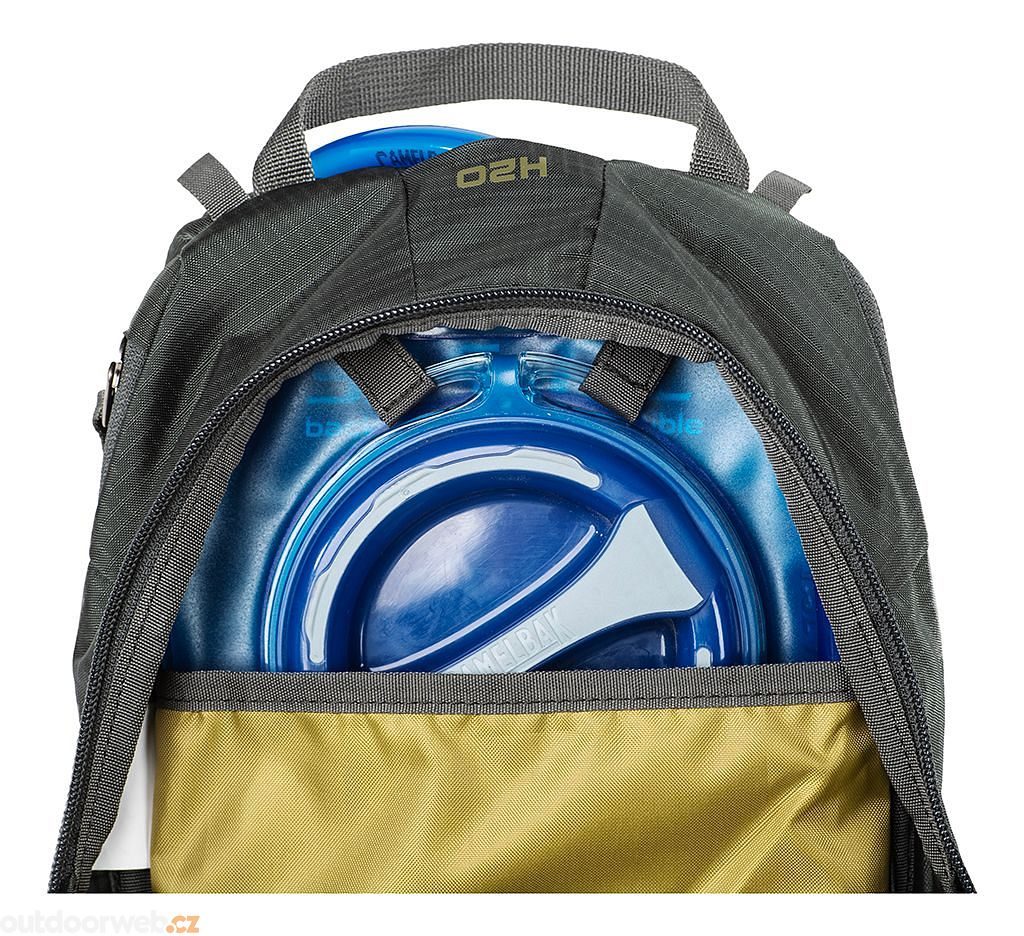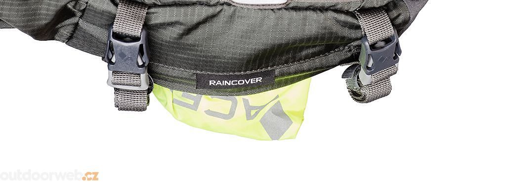 Integrované horní kompresní popruhy a nový tvar bederního pásu zajišťují stabilní usazení na zádech. Pláštěnka je umístěna v samostatné zipové kapse, zatímco prodloužená čelní kapsa s vertikálním zipem usnadňuje přístup k vašim věcem.