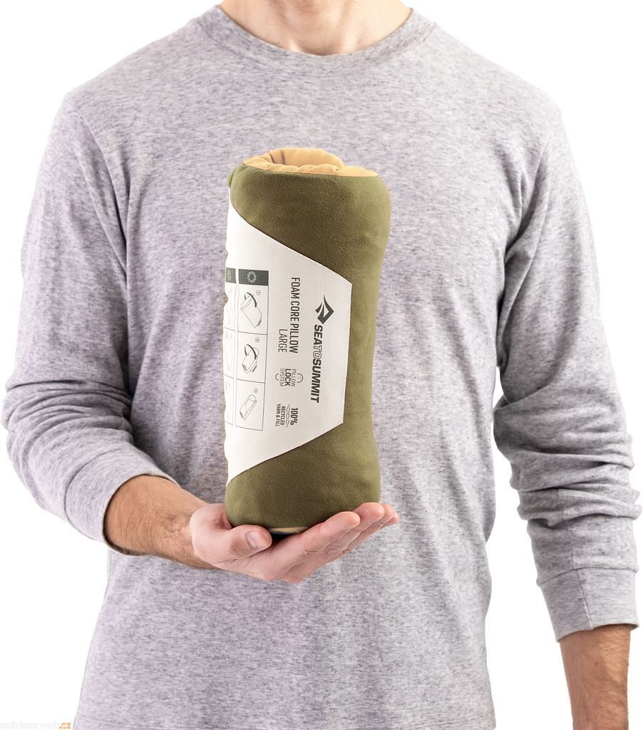 Lehký polštář s pěnovou výplní pro cestovatele, kteří nechtějí kompromis mezi komfortem a hmotností. Vyroben z recyklovaných materiálů včetně zbytků z našich karimatek.