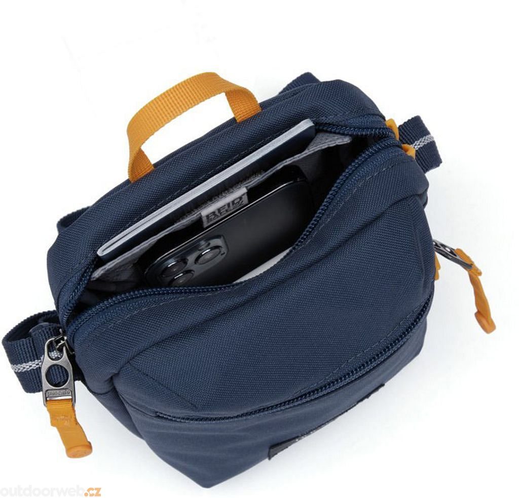 Bezpečnost vašich cenností zajišťují uzamykatelné zipy, kapsa s RFID blokováním a popruh odolný proti proříznutí. Navíc je taška vyrobena z 5 recyklovaných plastových lahví, což ji činí ekologickou volbou.