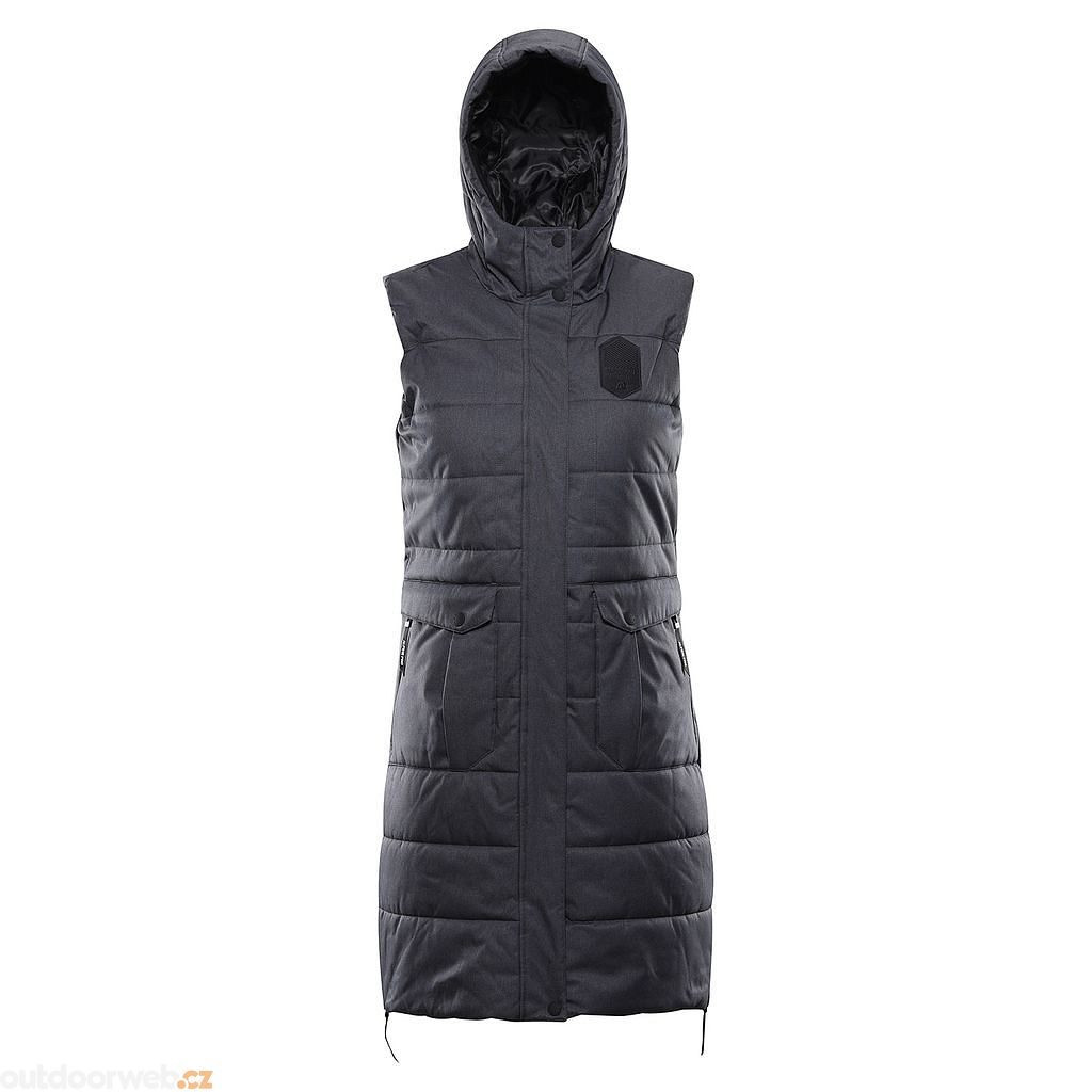 Dámská vesta HARDA vyrobena z materiálu s DWR (Durable Water Repellency) úpravou má speciálně nanesenou vodoodpudivou vrstvu. Dopadající vlhkost (voda, sníh) vytváří drobné kapičky, které okamžité odtékají z povrchu materiálu pryč. Díky této DWR úpravě zůstává oblečení déle suché i při nepříznivém počasí.