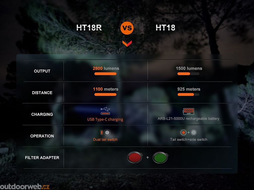 Ovládání lovecké svítilny Fenix HT18R