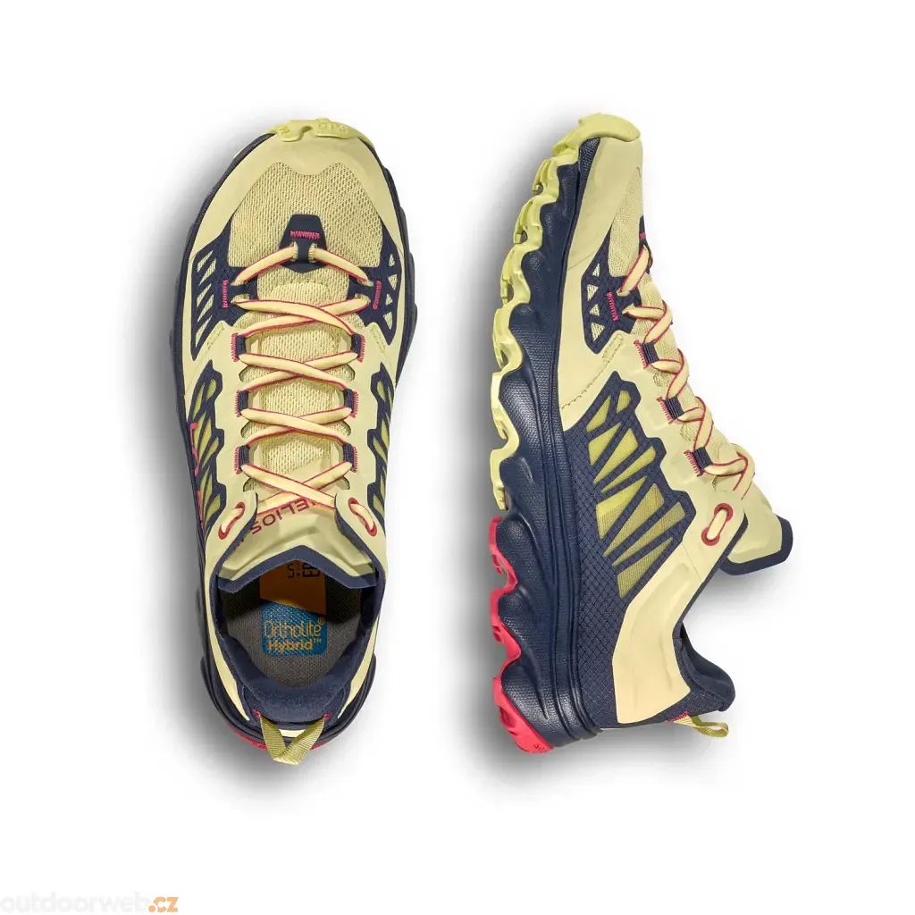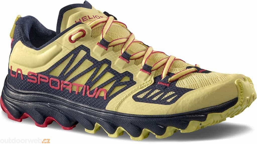 Jak správně vybrat velikostDámské extrémně lehké trail runningové boty Helios III, značky La Sportiva. Jsou určené k běhání po zpevněném povrchu a nošení při regeneraci mezi tréninky. Podrážka z tužší gumy (FriXion Blue) vykazuje potřebnou odolnost a díky masivní pěnové mezipodešvi skvěle boty tlumí nárazy.