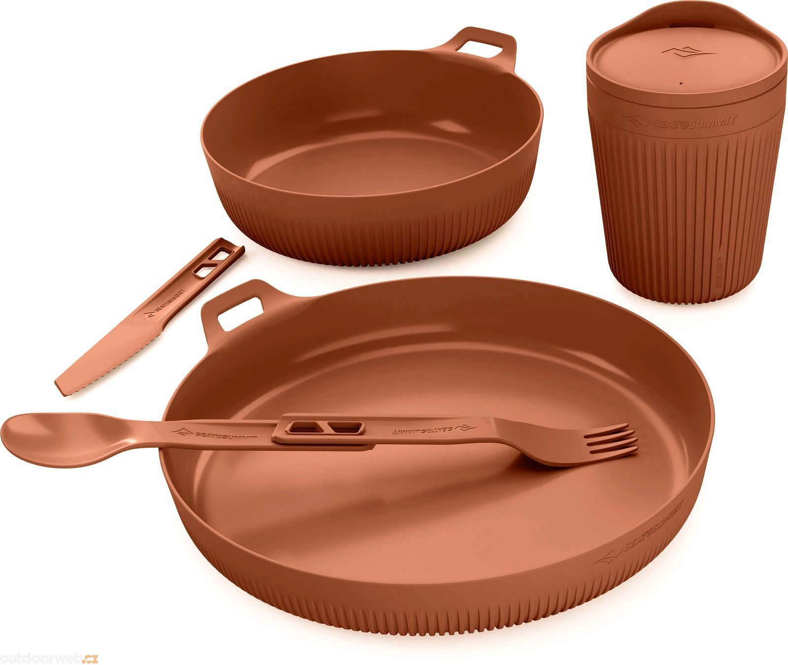 Sada nádobí Horizon je kompletní řešení pro outdoor jídlování jedné osoby. Zahrnuje talíř, misku, termohrnek, příbory a síťovaný pytlík. Navržena pro pohodlné a bezpečné stravování v přírodě bez stolu.