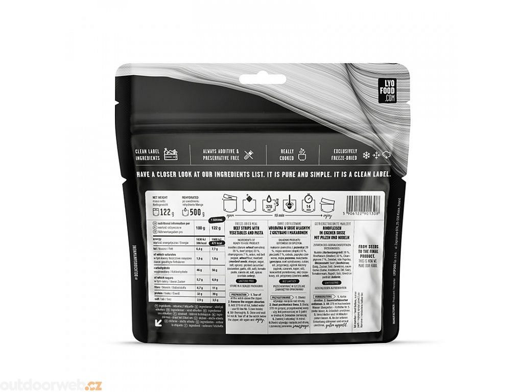 Tato lyofilizovaná jídla jsou v současnosti nejchutnější na trhu. LYO EXPEDITION nabízí lahodnou škálu různých chutí, k dispozici jsou dokonce i lyofilizovaná ovoce. Všechna jídla jsou bez konzervačních látek a umělých přísad. Obal byl také vylepšen: nyní je znovu uzavíratelný. “