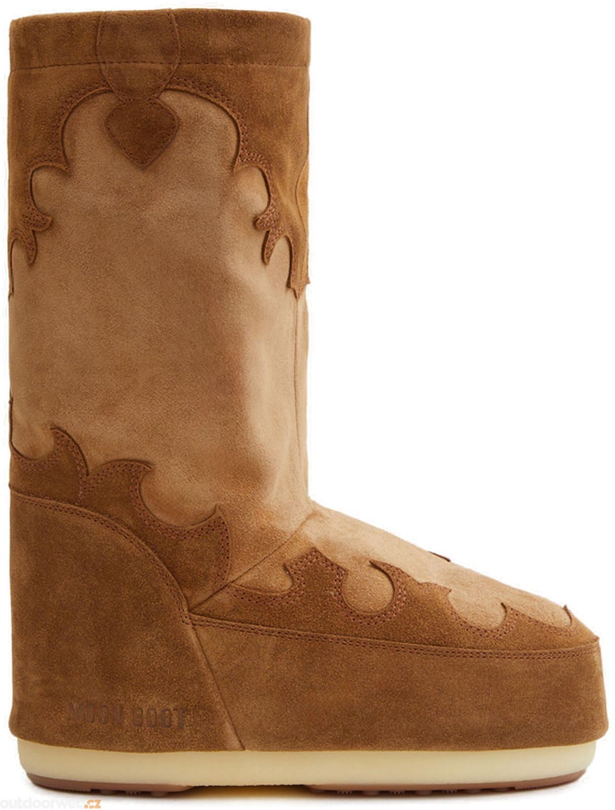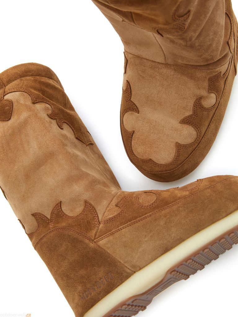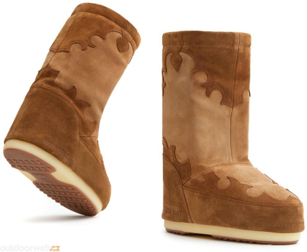 Jak správně vybrat velikostZimní boty značky Moon Boot vychází z obuvi astronautů při prvním přistání na Měsíci. Tento model má prošívané panely a vzor připomínající kovbojské holínky divokého západu. Odolný semišový svršek má vodoodpudivou úpravu. Hnědé zimní kozačky osloví všechny dámy, které milují jedinečné kousky.