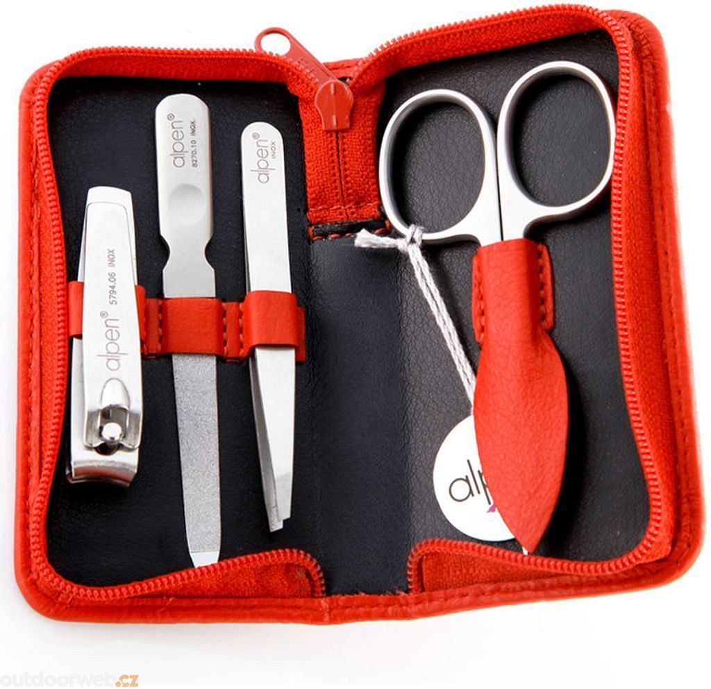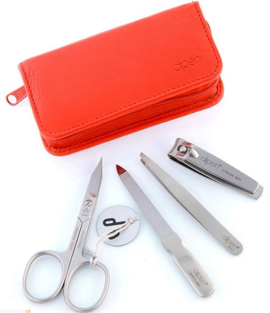Elegantní sada v koženém pouzdře s praktickým zavíráním na zip od italské značky Alpen nabízí čtyři nezbytné nástroje pro perfektní péči o ruce. Nástroje jsou vyrobeny z kvalitní nerezové oceli s pečlivou péčí řemeslných mistrů Lombardie.