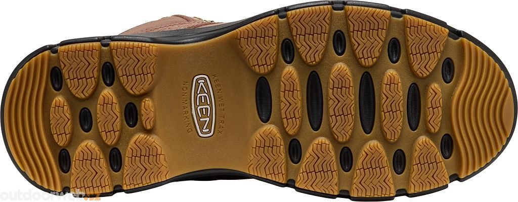 Gumová podešev s KEEN.WET TRAX vzorkem a stabilizační výztuž zajišťují bezpečný krok a odolnost proti skluzu na mokrém povrchu.