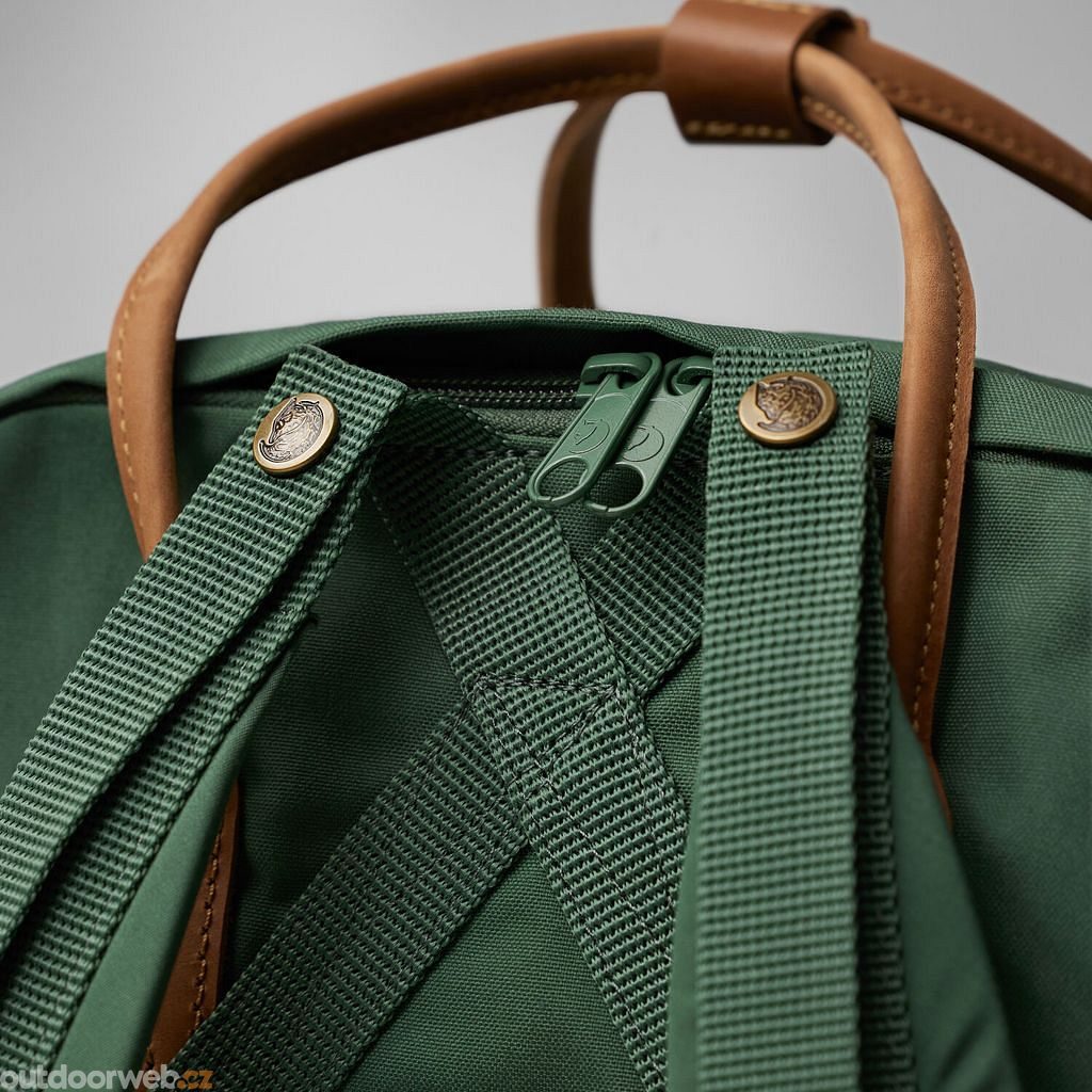 - Batoh Kånken z materiálu G-1000 HeavyDuty Eco s polstrovanou přihrádkou na notebook a koženými rukojeťmi a detaily.