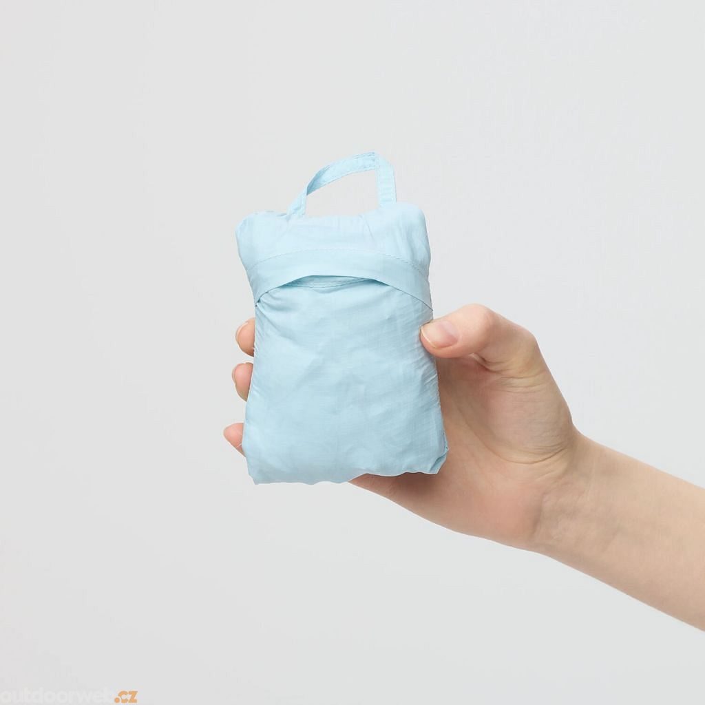 Vyrobena z recyklovaného polyamidu bez škodlivých PFAS látek a snadno se schová do kapsy na batohu.