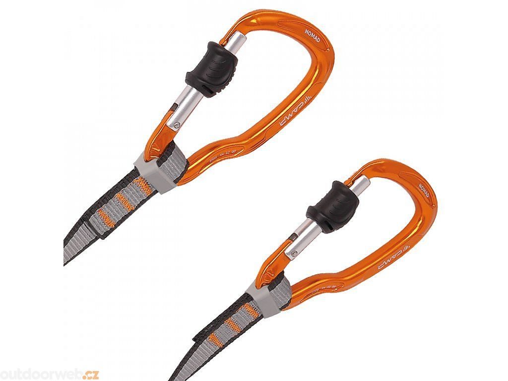 Obrtlík Gyro pomocí otočných závěsů zamezujekřížení zajišťovacích lanyardů a odstraňuje tak jejich nekonečné zamotávání při jištění. Karabiny CAMP Echojsou speciálně vyvinuté pro tu nejjednodušší obsluhu a komfortní ovládání. Díky jejímu prodloužení, oproti běžným ferratovým karabinám, zamezuje kontaktu prstů s jistícím lanem a zvyšuje manipulovatelnost.