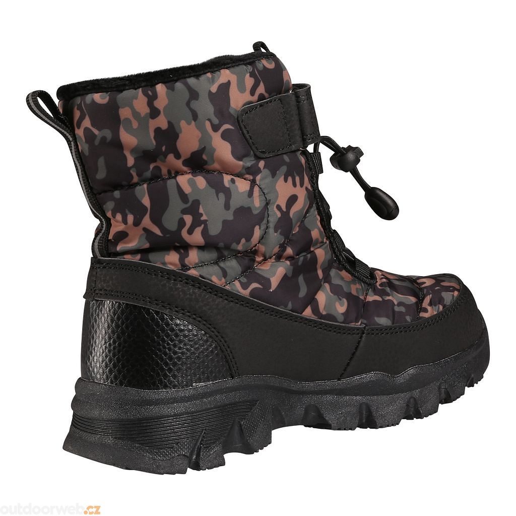 Celopotištěný materiál je výrazný a snadno se ošetřuje. Vnitřek boty je vybaven měkkou a hřejivou podšívkou, která poskytuje ochranu proti chladu. Upevnění obuvi je řešeno pomocí tkanic se stoperem a jedním suchým zipem.
